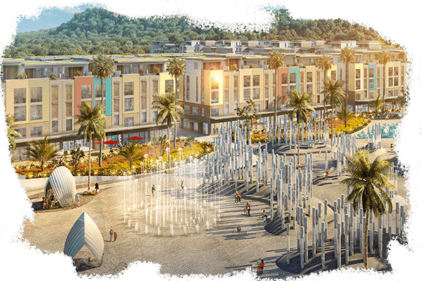 Toàn bộ khu đô thị được thiết kế và xây dựng bởi những thương hiệu nổi tiếng thế giới như Dark Horse Architecture (Úc) và One Landscape (Hong Kong) theo mô hình Ripple – Hạ tầng vượt trội, kết nối thông minh và rộng khắp, xuyên suốt các phân khu. Đây cũng chính là những khối óc đã thiết kế nên những “siêu dự án” hiện nay như Grand World Phú Quốc, Premier Residences Phu Quoc Emerald Bay, Santorini Resort Master Plan Nha Trang,…
